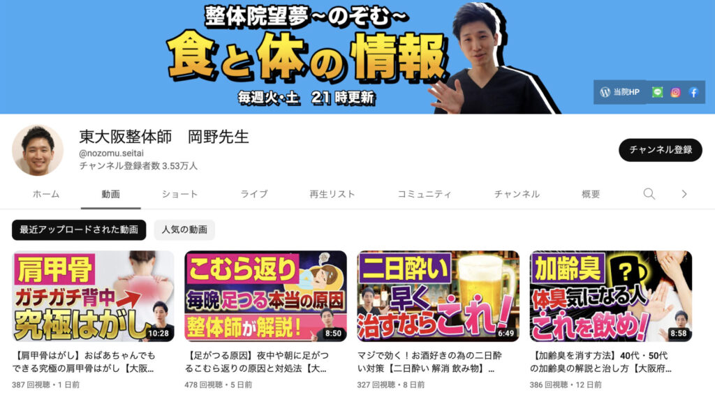 ・YouTube登録者数東大阪No.1整体師
