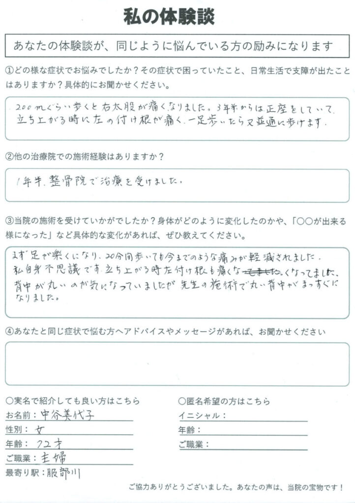 入矢様 脊柱管狭窄症 50代 交野市