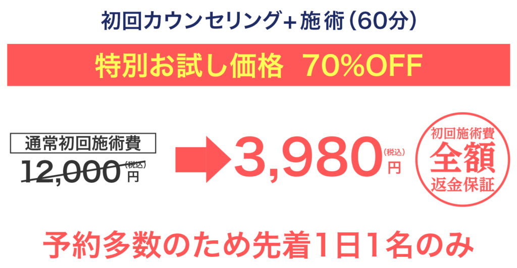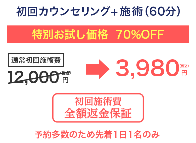 ここまで聞いてまだ不安なあなたへ初回の施術で効果を実感できなければ施術費を全額返金します。